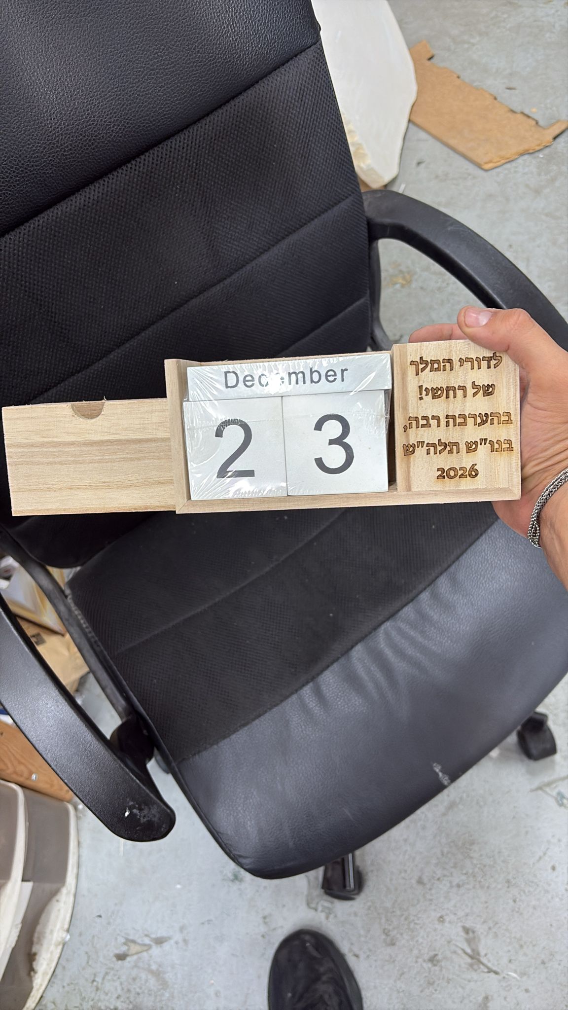 מעמד קלנדר תאריכון קוביות עץ טבעי עם כוס לעטים ומעמד כרטיסי ביקור עם חריטה אישית